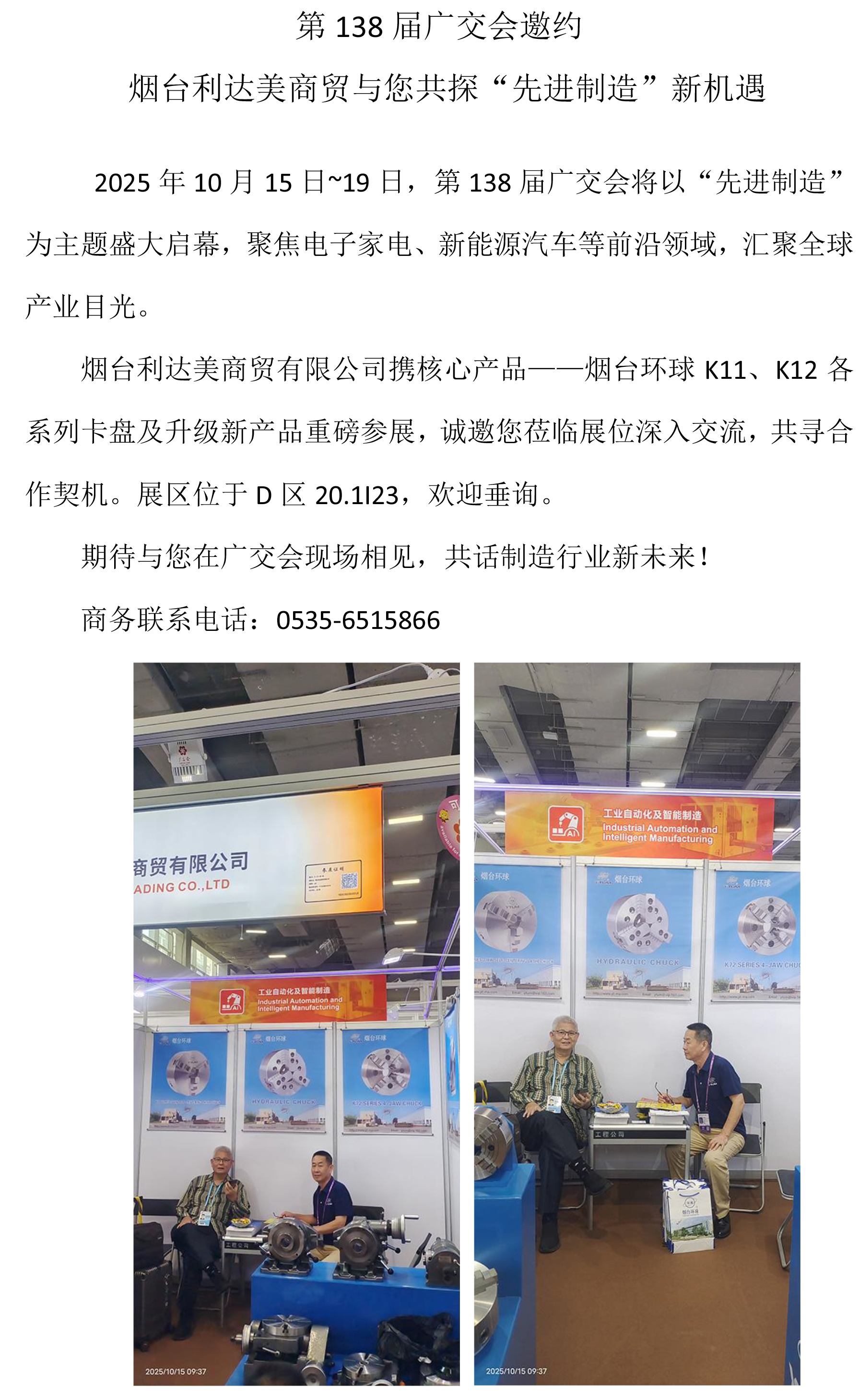 第138屆廣交會邀約 煙臺利達美商貿與您共探“先進制造”新機遇